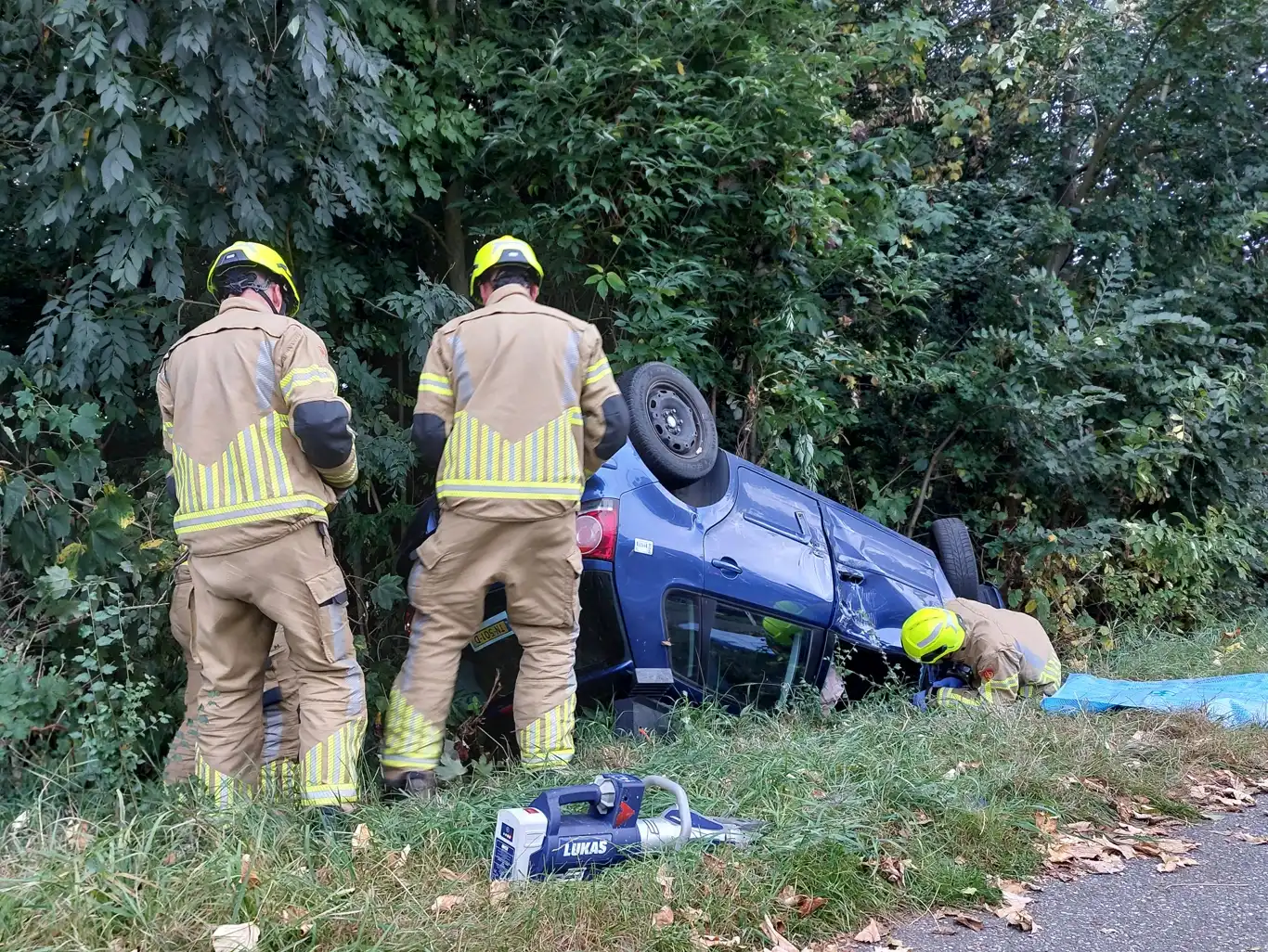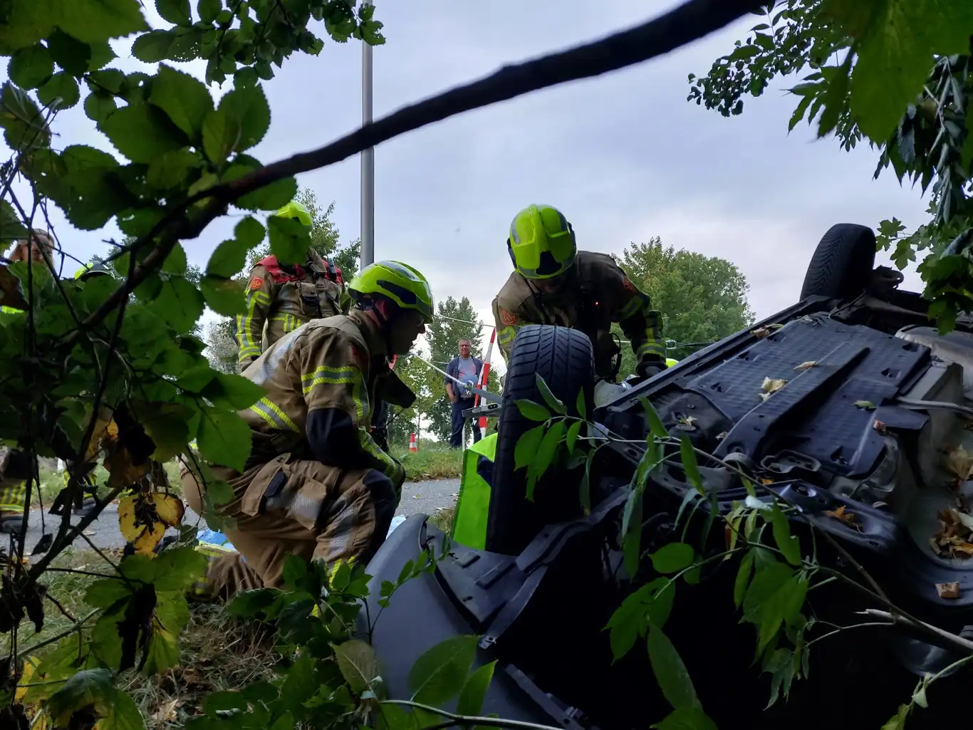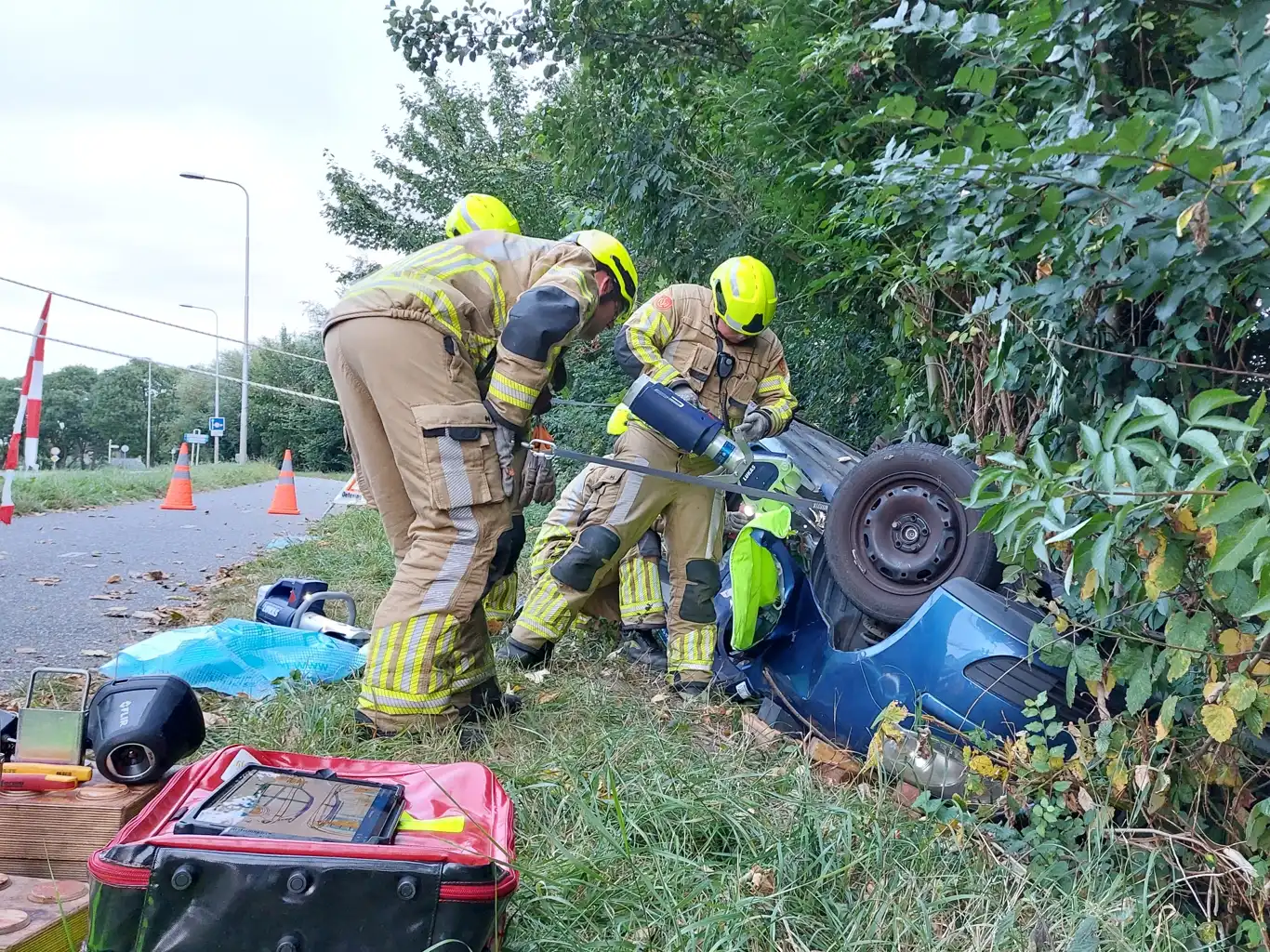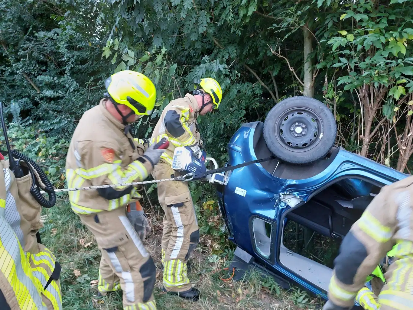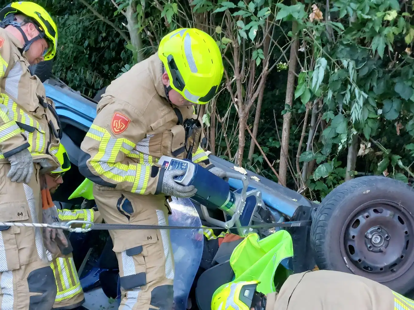 De brandweer stelde de auto veilig en stabiliseerde deze. Daarna knipte ze de auto open om de slachtoffers te bevrijden.