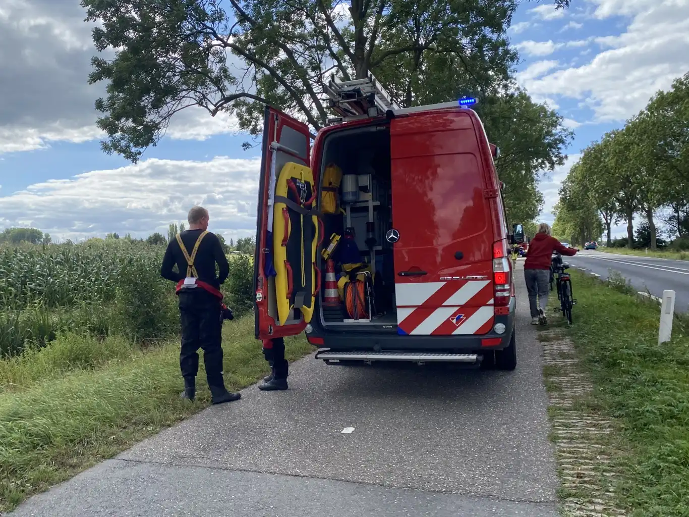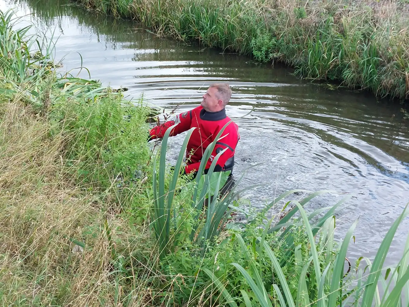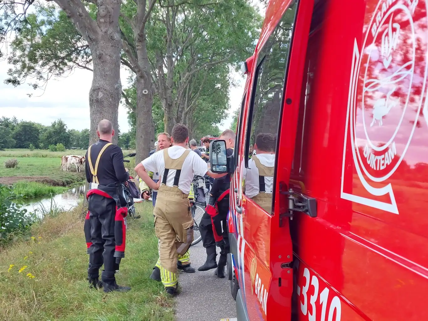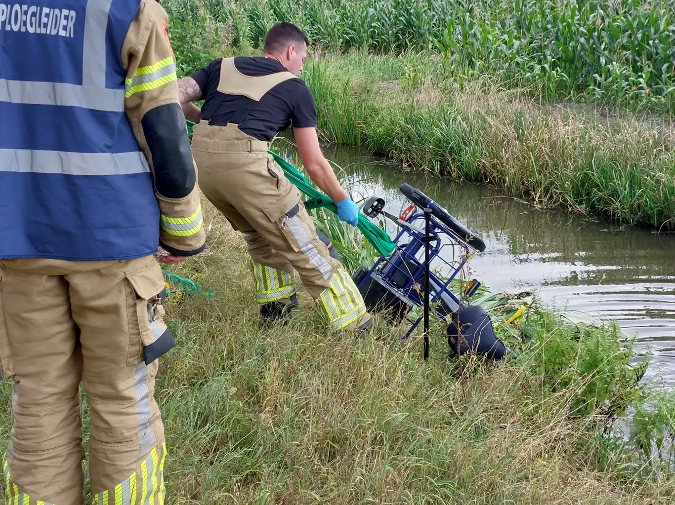 Het duikteam haalde de driewieler uit de sloot. De ambulance bracht de vrouw naar het ziekenhuis.