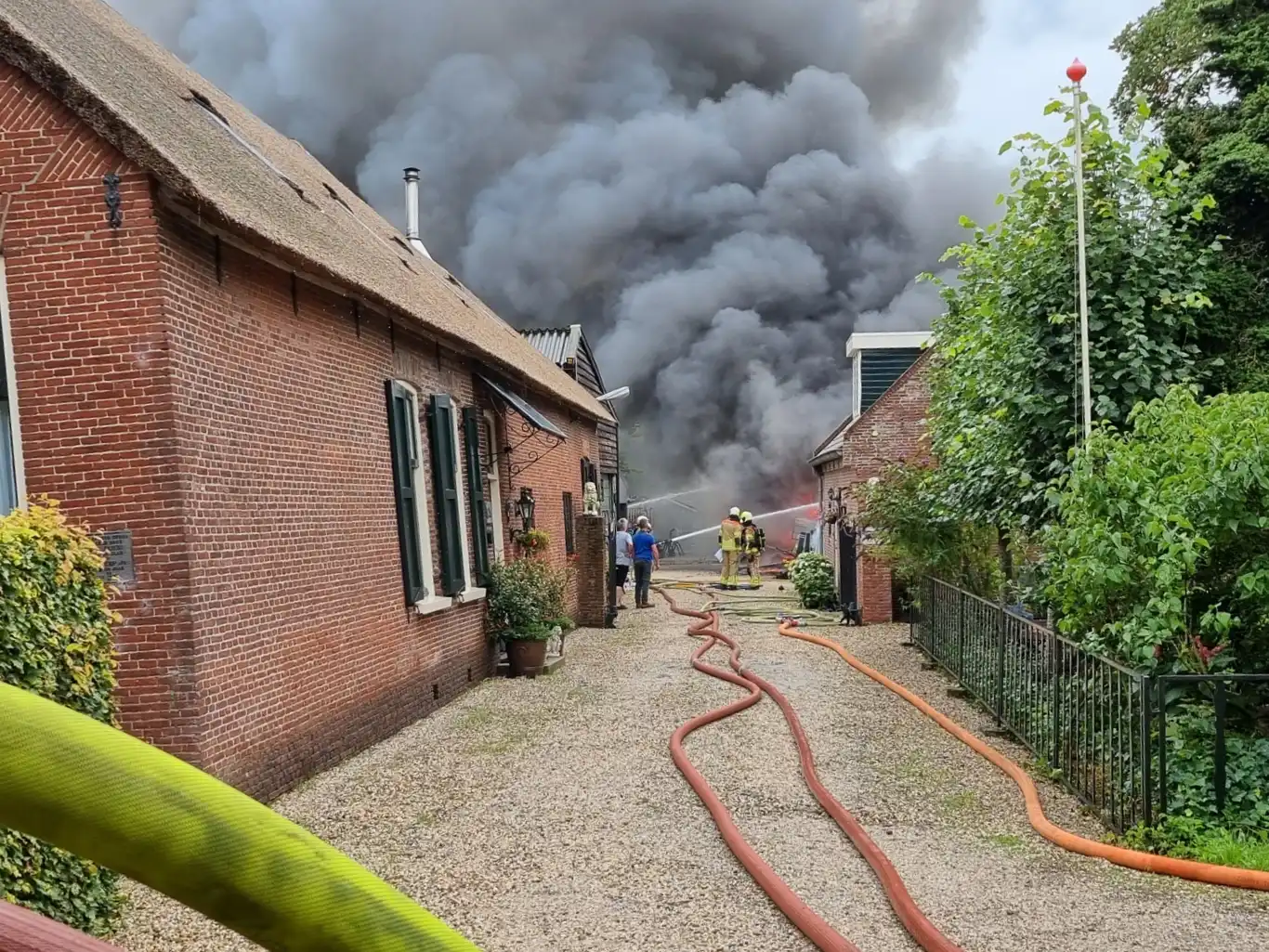 De boerderij had een rieten dak. De brandweer zette in op het beschermen daarvan. Dat is gelukt. De boerderij en het woonhuis bleven behouden.
