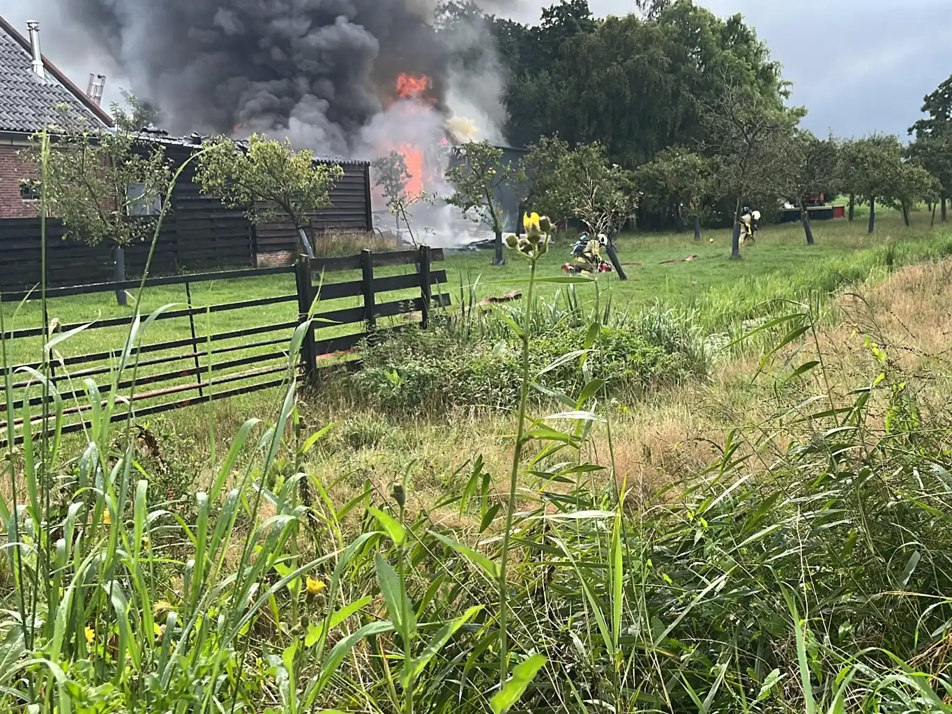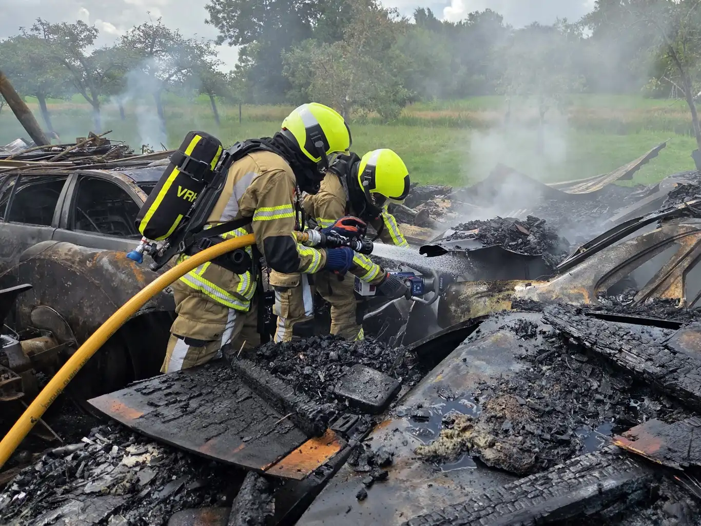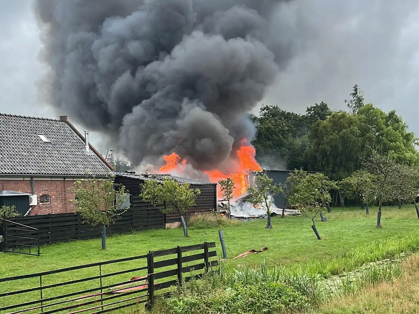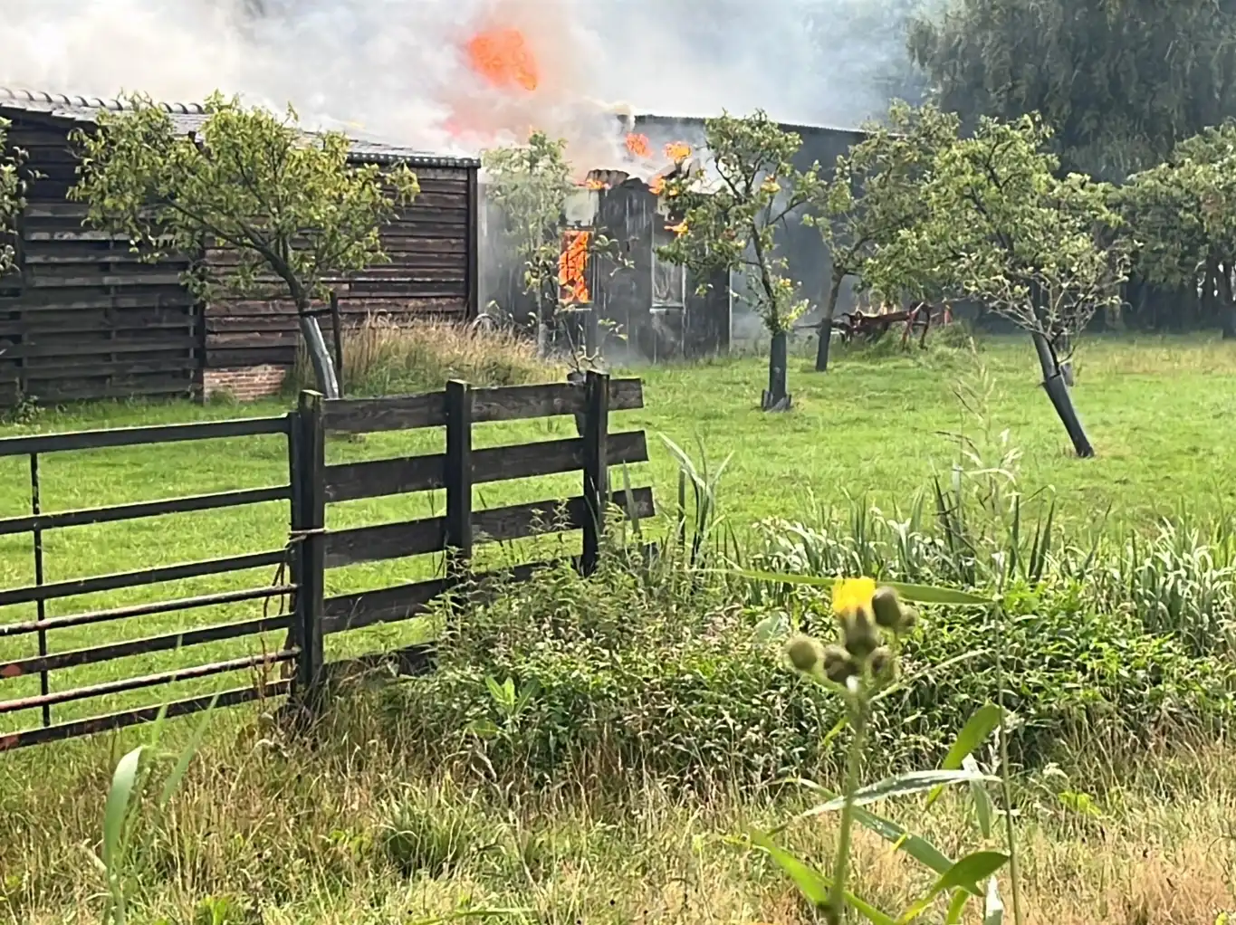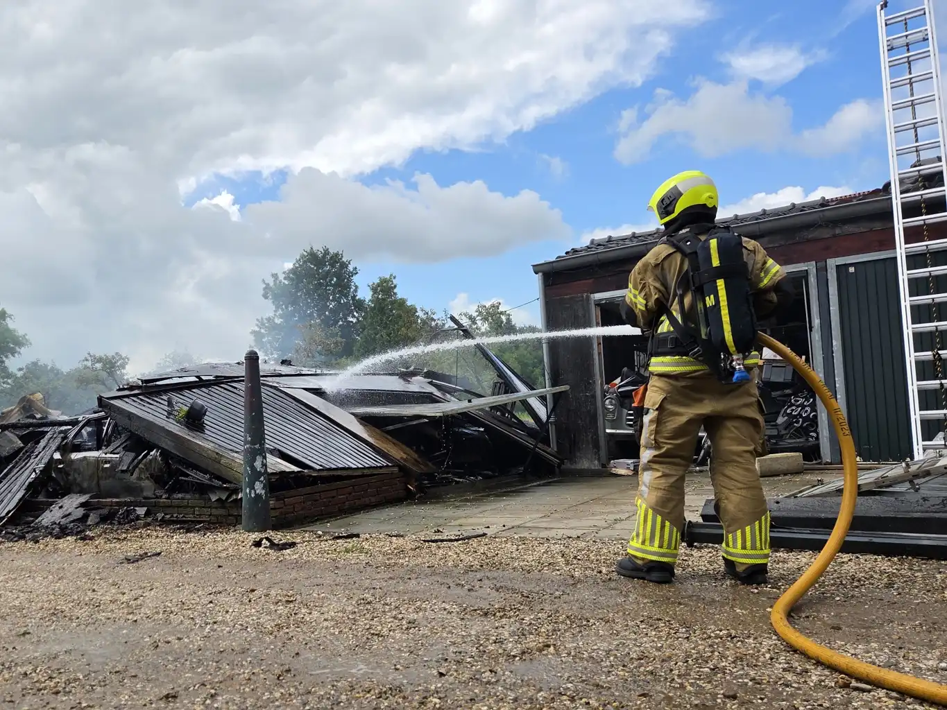 De brandweer had het vuur aan het eind van de ochtend onder controle. Met een kraan werd de schuur uit elkaar gehaald.