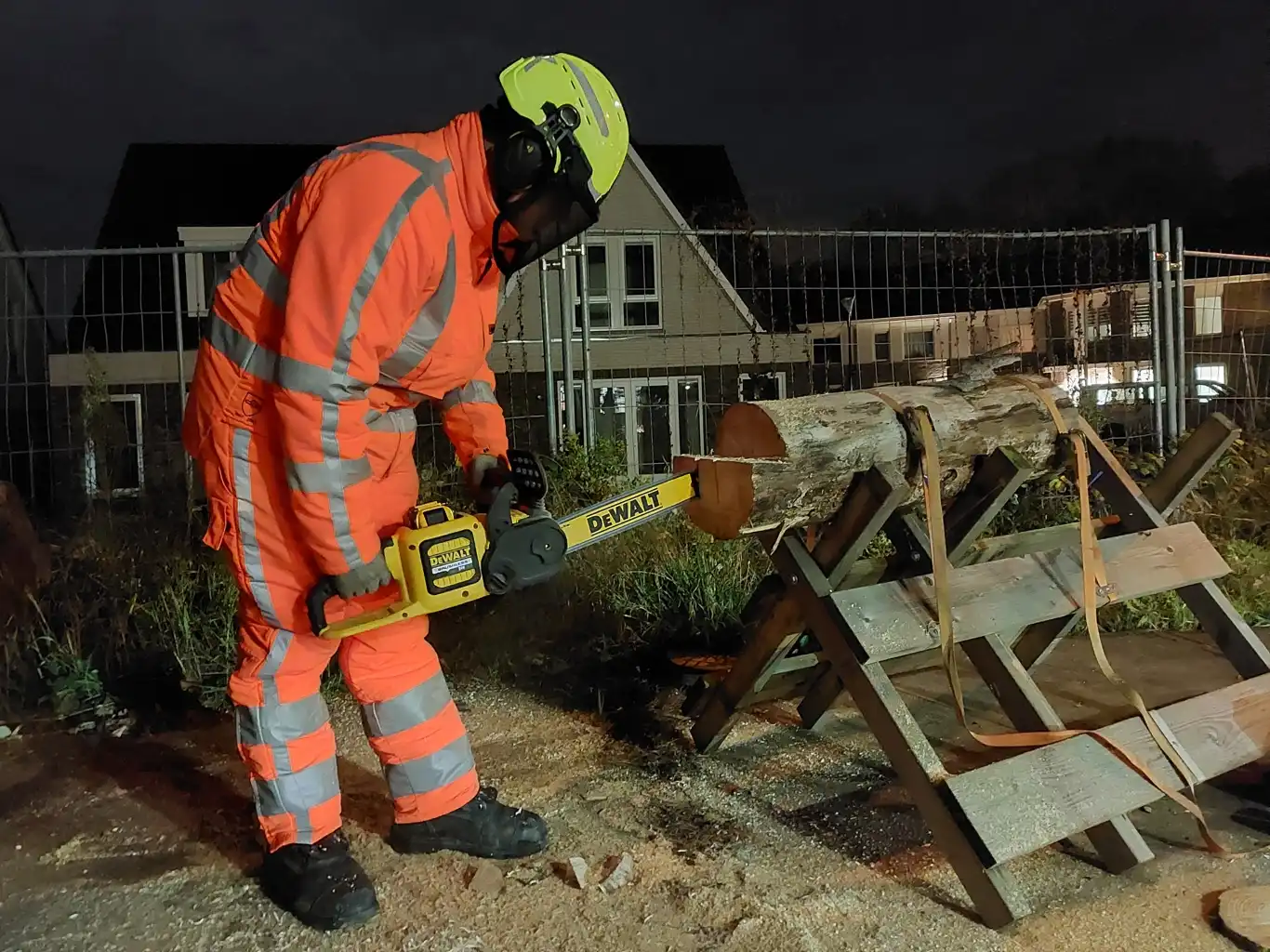 De groep met gereedschap oefende met de kettingzaag en met slijpmachines. Brandweermensen leerden veilig werken met de apparaten. En hoe zij het gereedschap goed onderhouden.