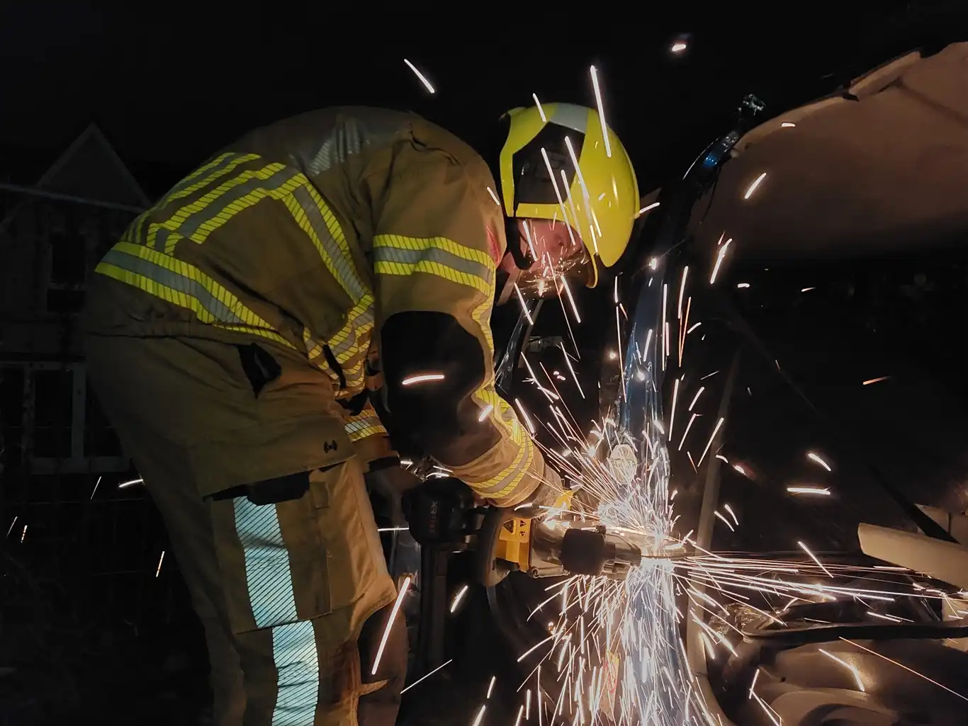 De brandweer hield dinsdag twee oefeningen. De ene groep werkte met gereedschap. De andere groep oefende met een verkeersongeval.