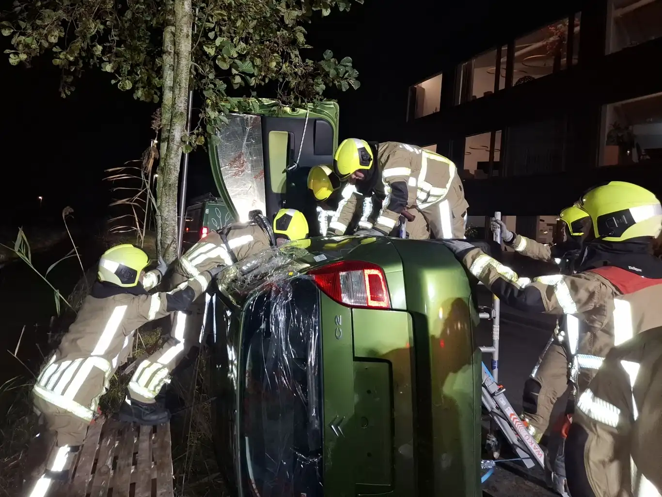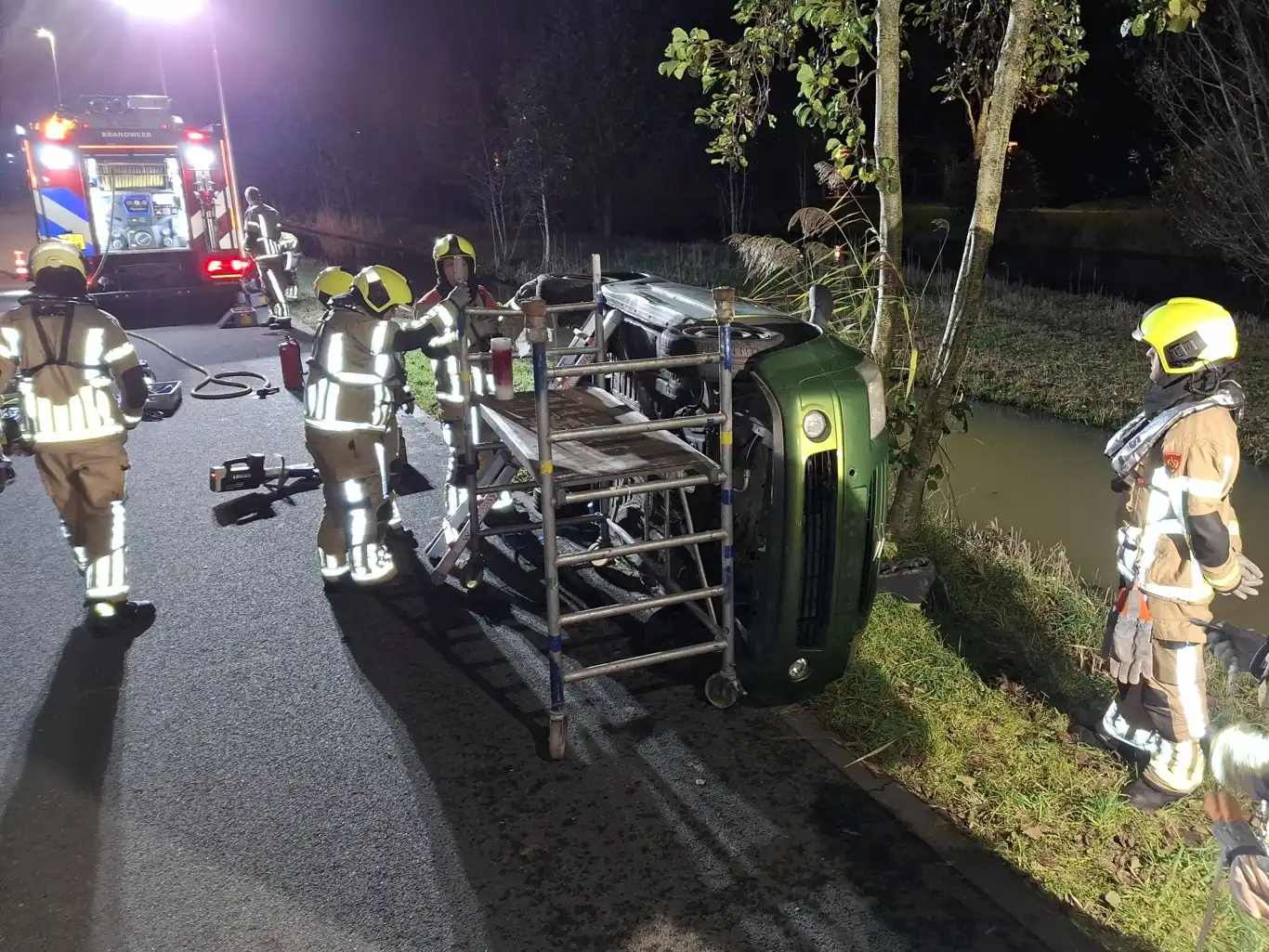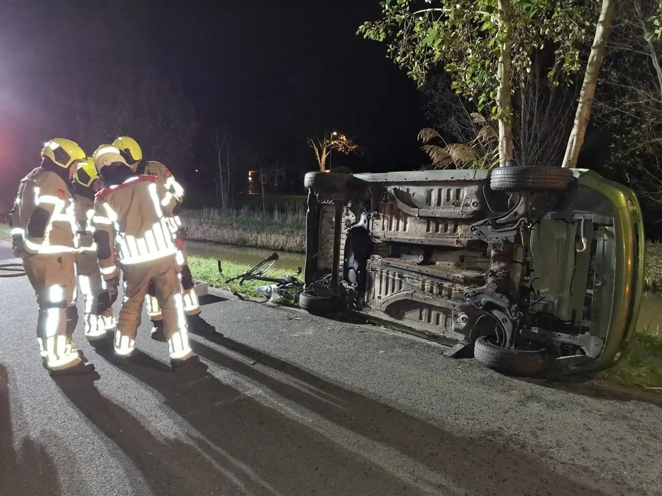 De andere groep oefende aan De Smaragd. Daar lag een auto op zijn kant. In de auto zat een persoon vast. De auto had ook een fietser geraakt. De fiets lag onder de auto.