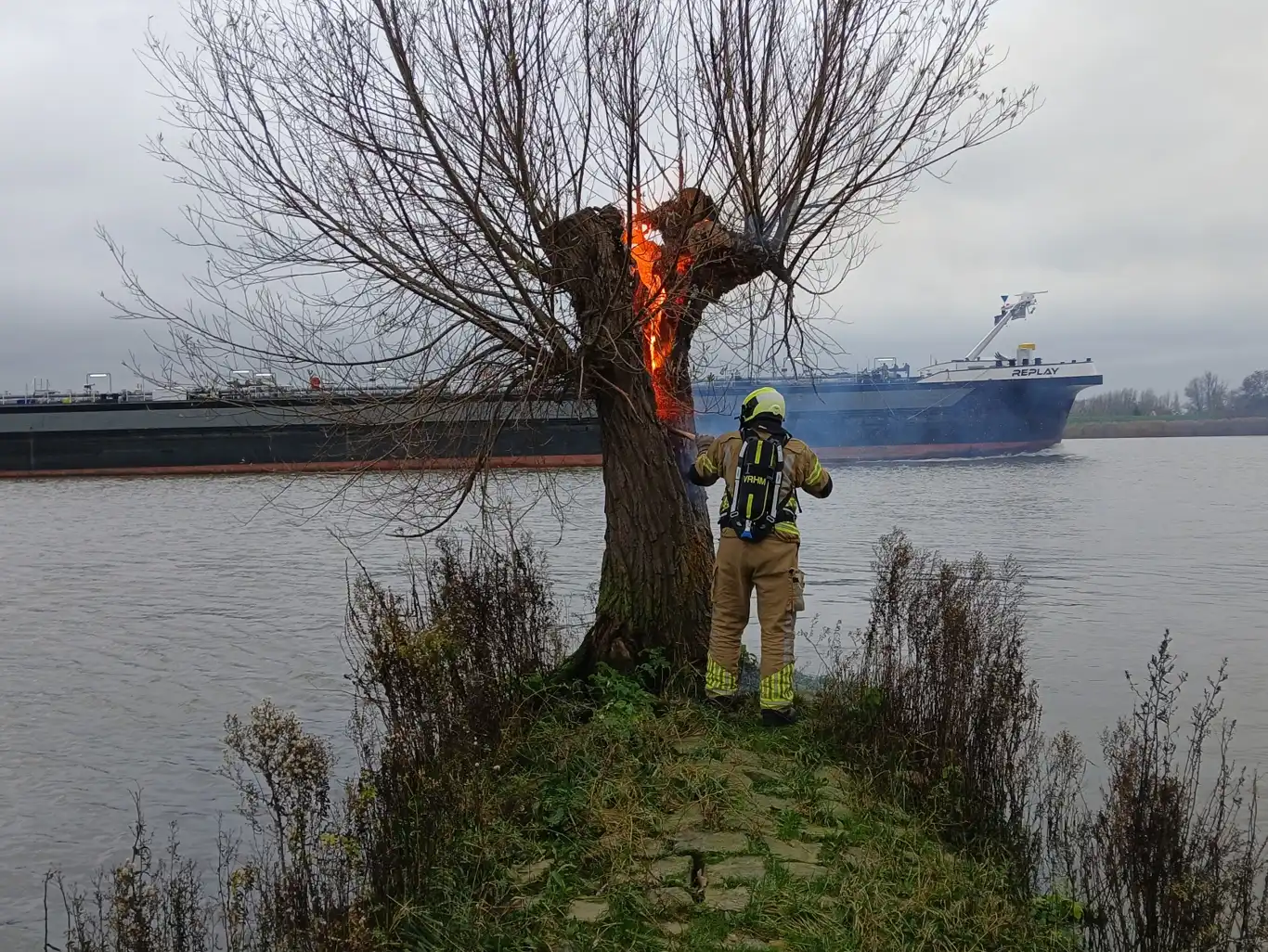 De patiënt lag op de eerste verdieping. Brandweerlieden brachten de patiënt met de autoladder veilig naar beneden.