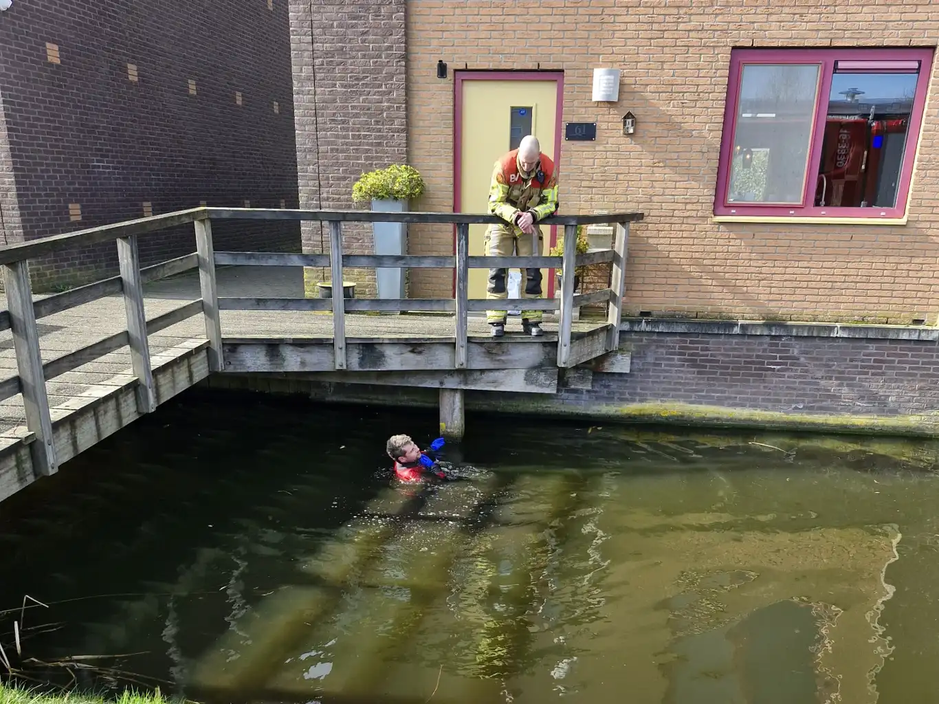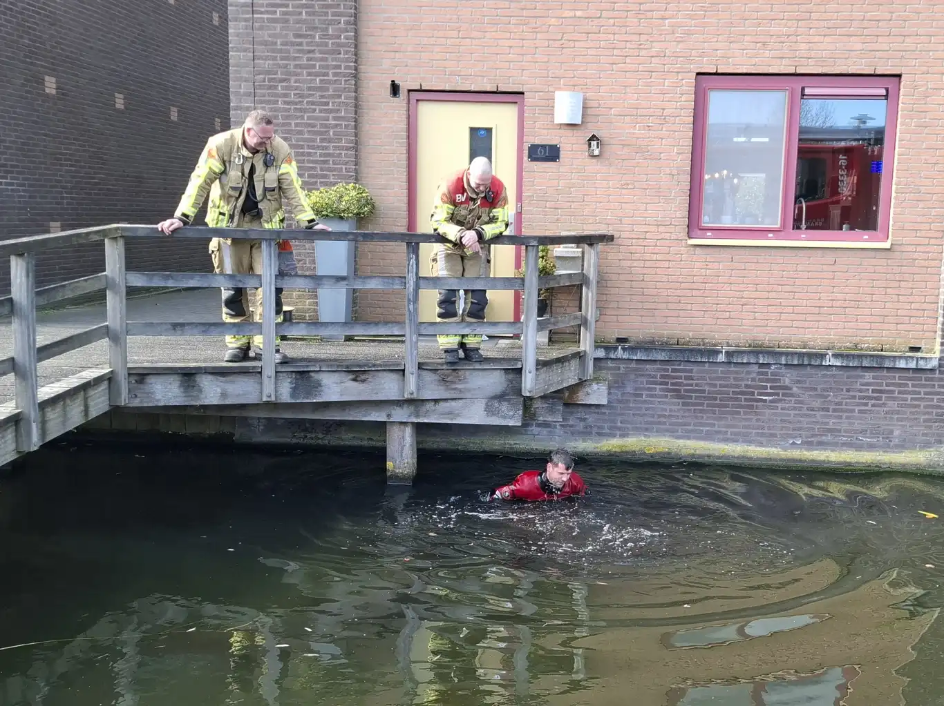 Eén brandweerman doorzocht het water in een droogpak. Ondanks alles kon de brandweer de scanner niet meer vinden.