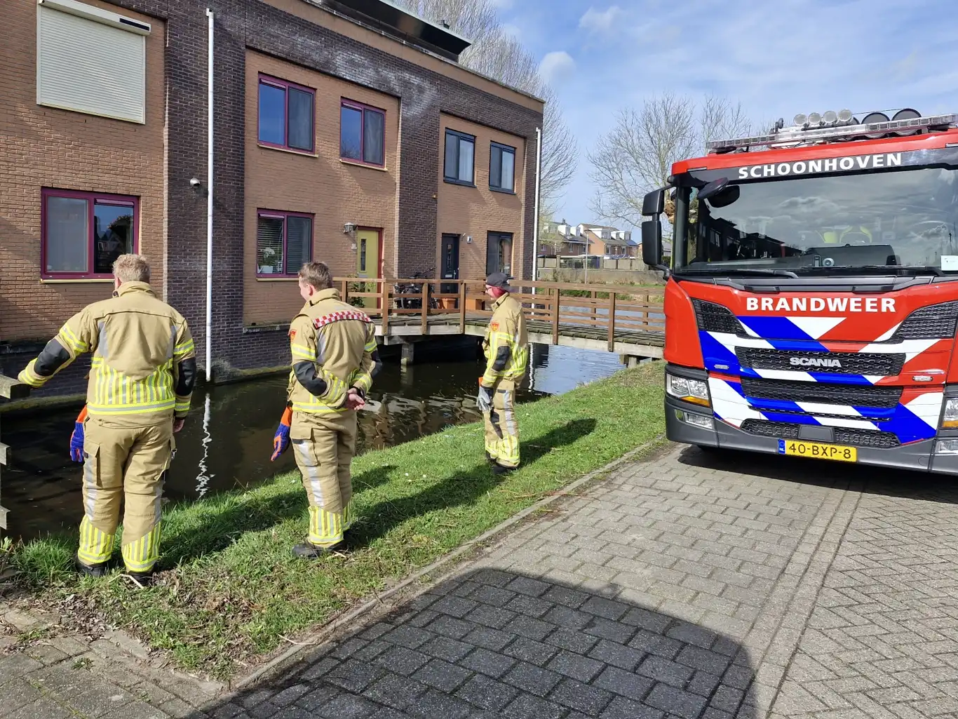 De brandweer hielp met zoeken. Brandweerlieden keken in het water langs de kant. Zij zochten op de plek waar de scanner viel.