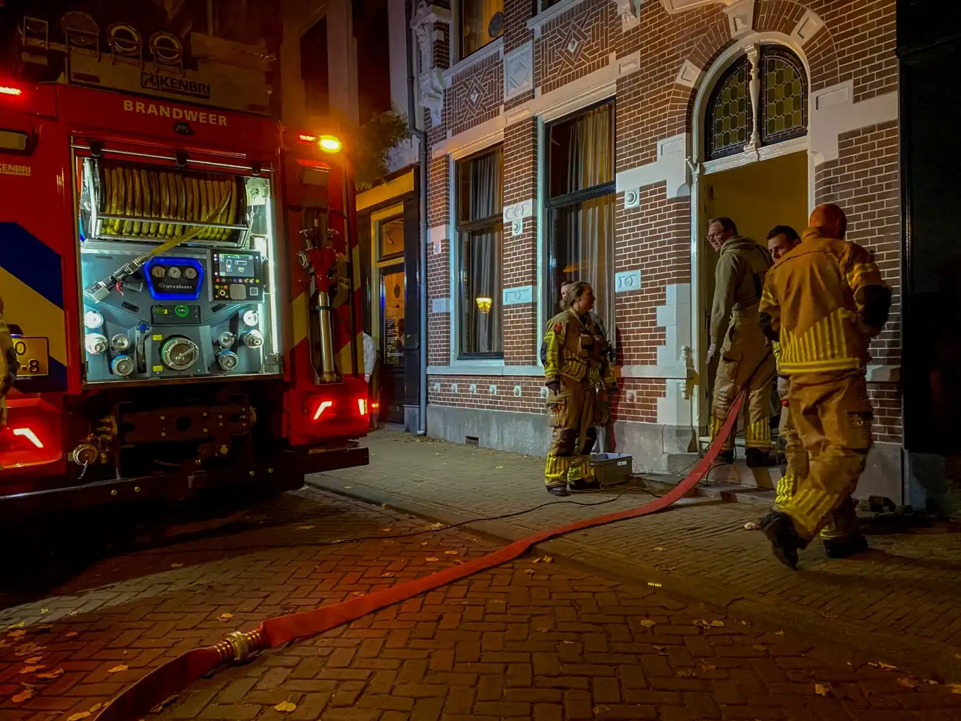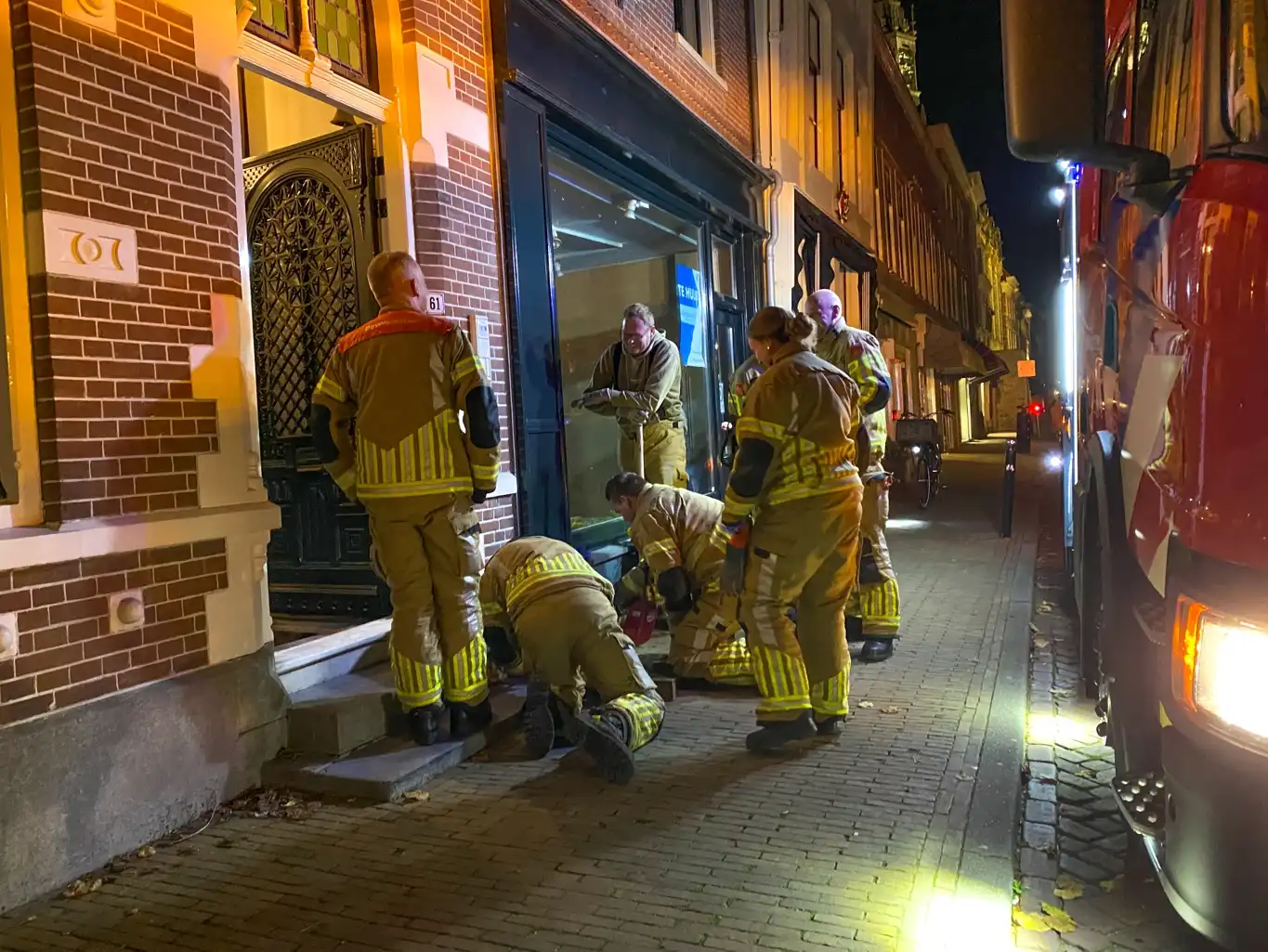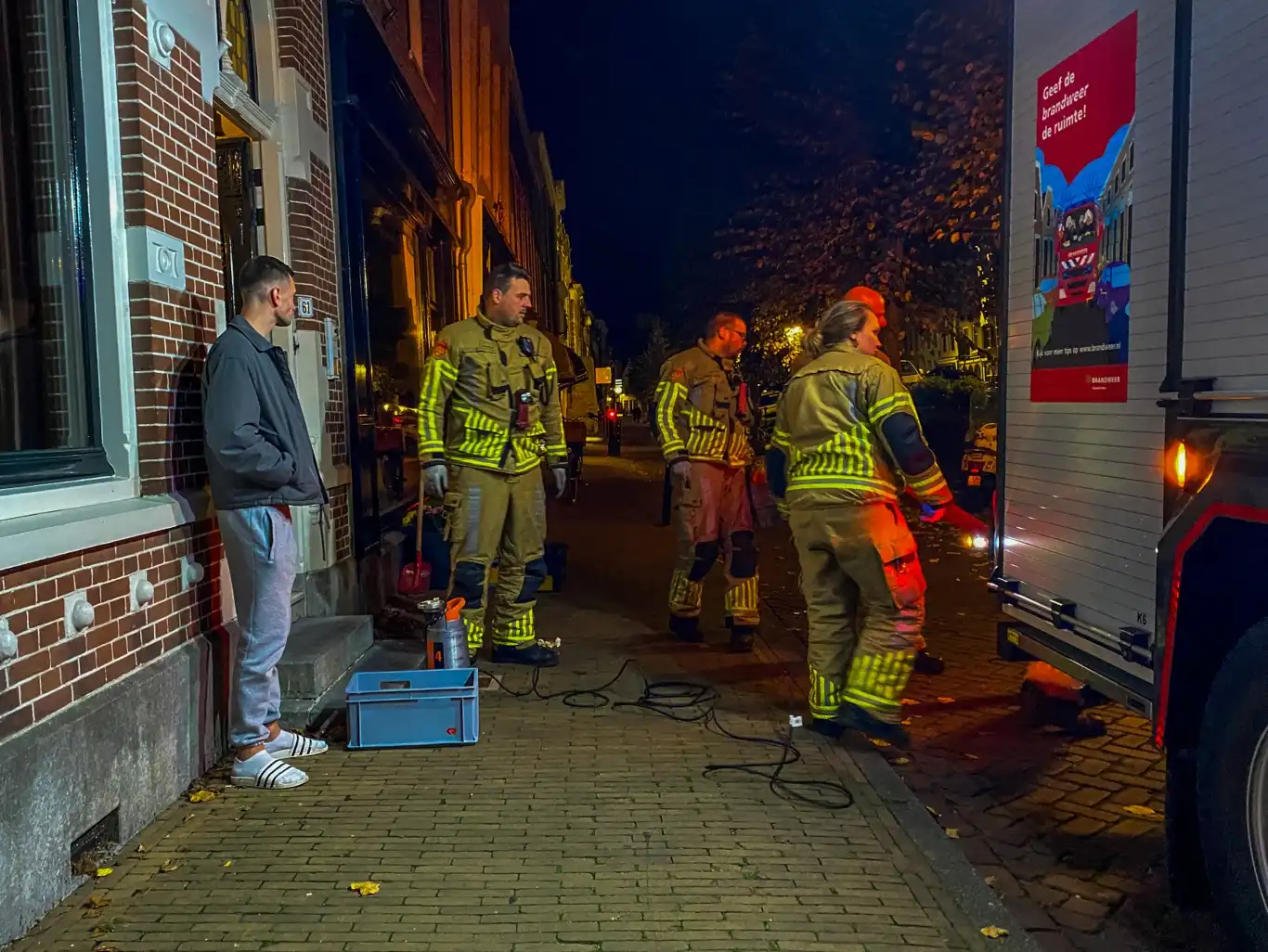 De brandweer stopte het water tijdelijk met tape en een houten plug. Zo voorkwam ze dat er meer water binnenkwam. Brandweermensen pompten ook water uit de kelder.